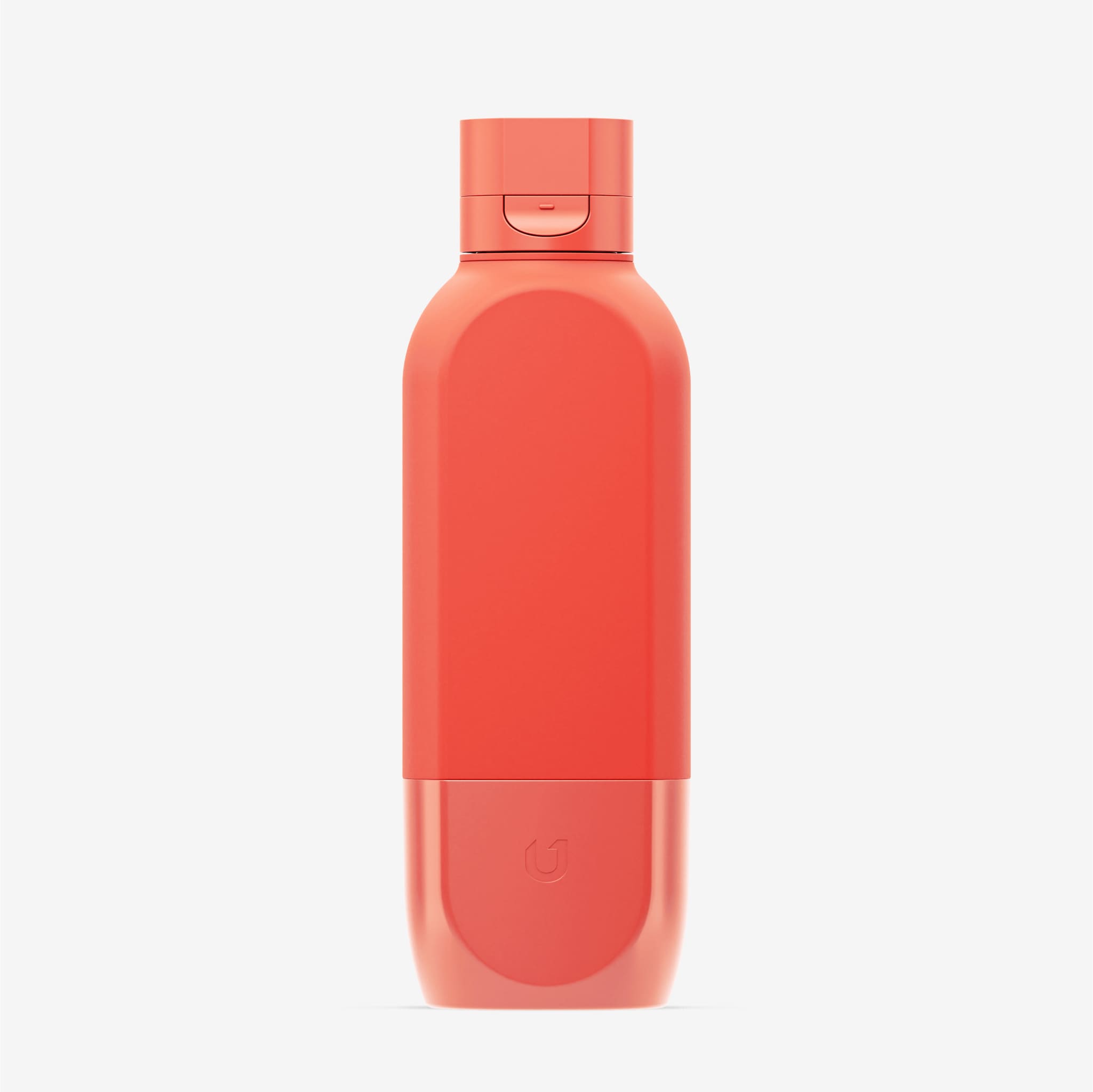究極の通勤用ボトル。片手で開閉できるキャップ、シリコングリップ、多機能シリコンハンドル付き。